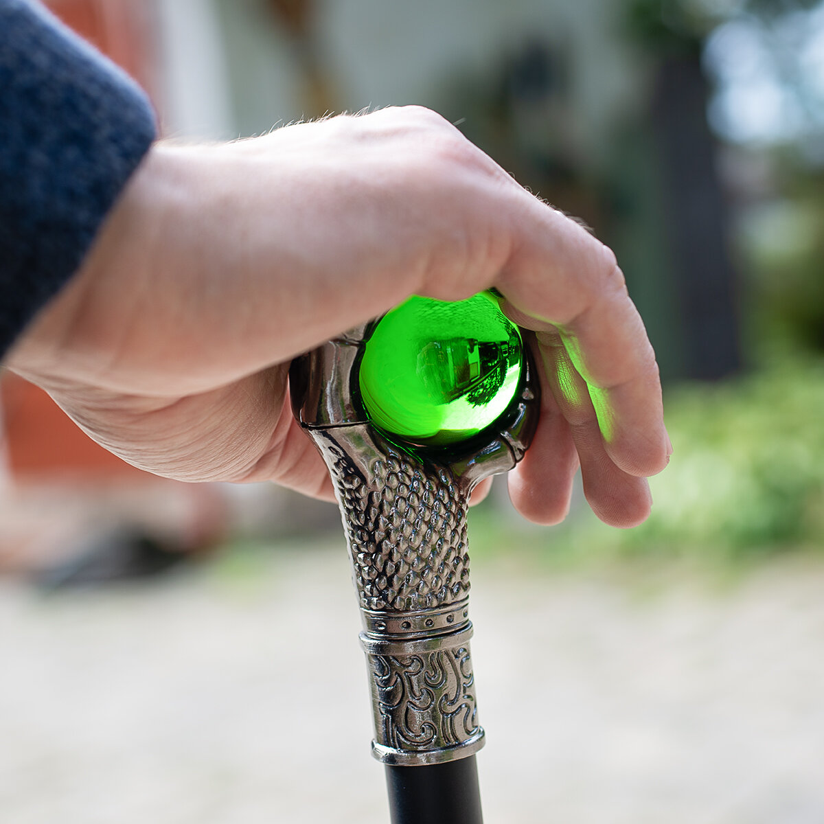 Загадочная трость в духе времён плащей и чумных масок докторов. В рукоятке имеется отверстие под установку клинка (клинок не прилагается). Возможно внутрь установить и светодиод - тогда светящийся шар в птичьей лапе на конце трости станет отличным атрибутом для проведения ритуалов.