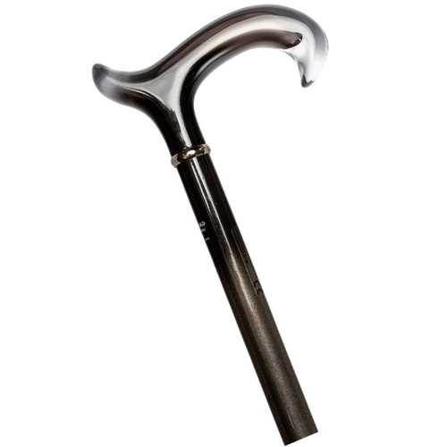 Трость ручной работы премиум класса выполнена из бука. Рукоятка "Дерби" из прозрачного акрила с дымчатыми цветными вкраплениями. Соединение рукояти и шафта перекрывает хромированное кольцо, шафт с глянцевой черно-серой металлической отделкой. Шафт с резиновым наконечником.