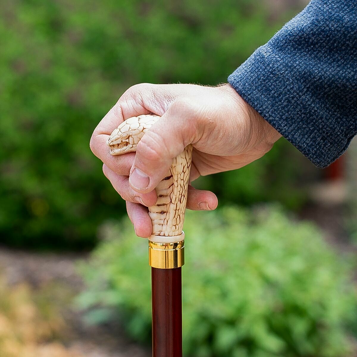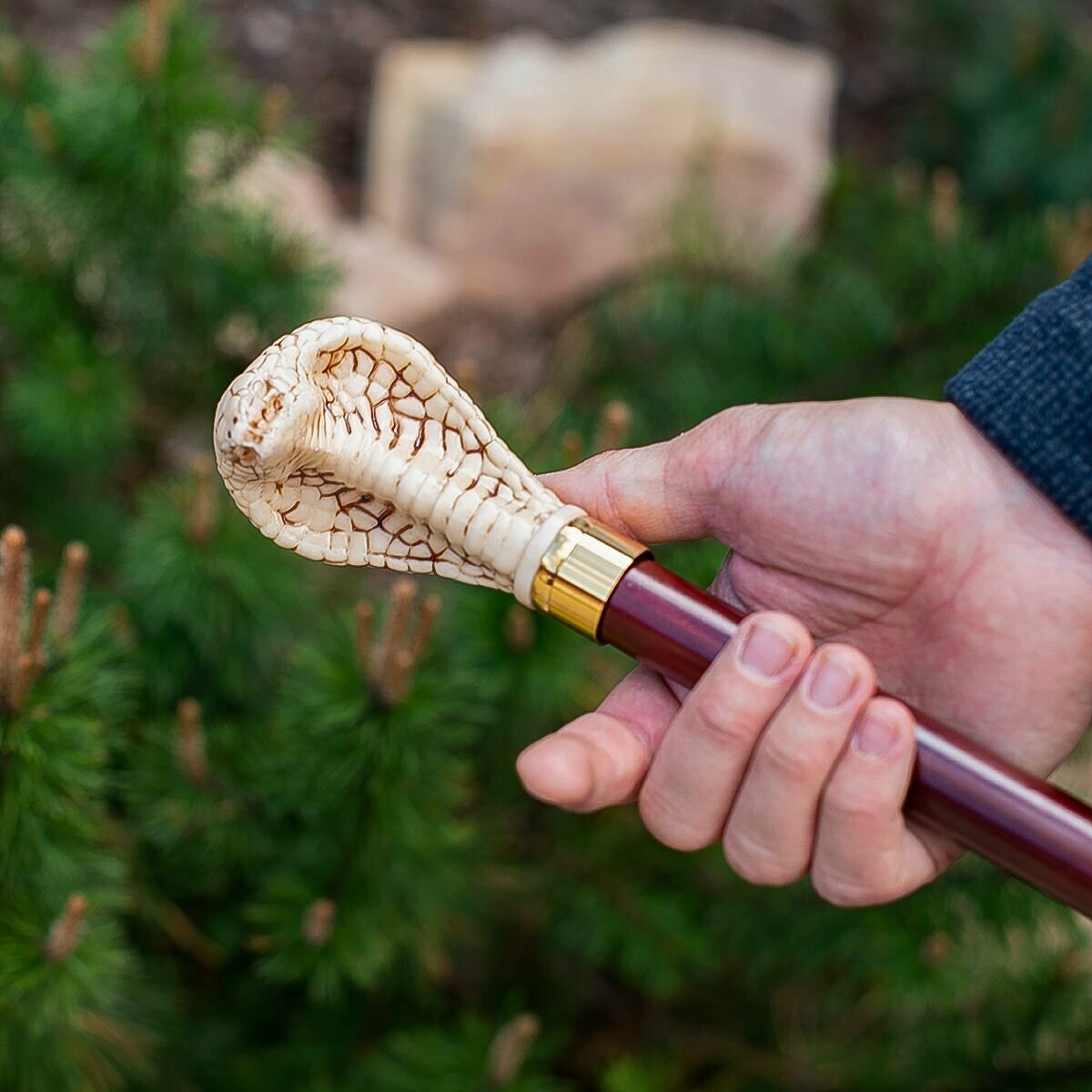 Особенностью этой трости является ее ручка в форме Кобры, ручка в виде Кобры привлекает внимание и добавляет экзотической нотки.