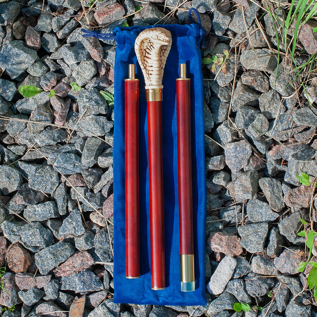 Представляем Вам уникальную деревянную трость коричневого-красного цвета с ручкой в виде Кобры из смолы, имитирующей слоновую кость! Эта стильная трость станет прекрасным дополнением Вашего гардероба и позволит Вам чувствовать себя уверенно и элегантно в любой ситуации. Трость разбирается на три части, что обеспечивает удобство при транспортировке и хранении, и не требует особых навыков и времени на сборку.