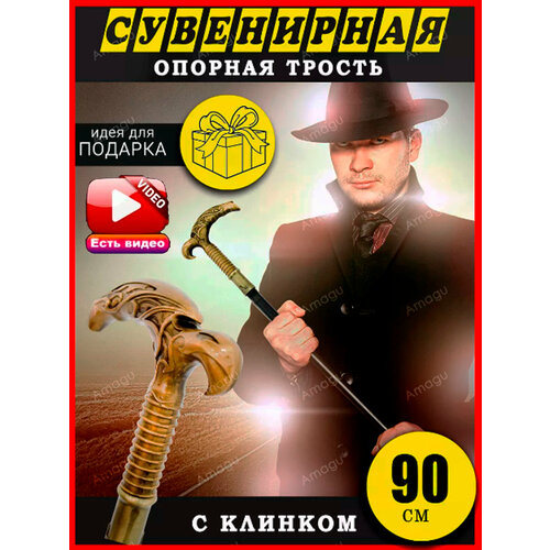 Трость с клинком сувенирная имеет золотистый и черный цвет, что делает ее стильной и элегантной. Отделка винтажным стилем придает трости особый шарм.