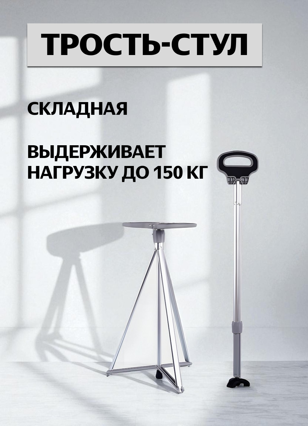 Многофункциональная трость-стул, складная, трёхногая, стандартная, серебряная: сравнение цен, характеристики, фото, актуальное наличие и цены.