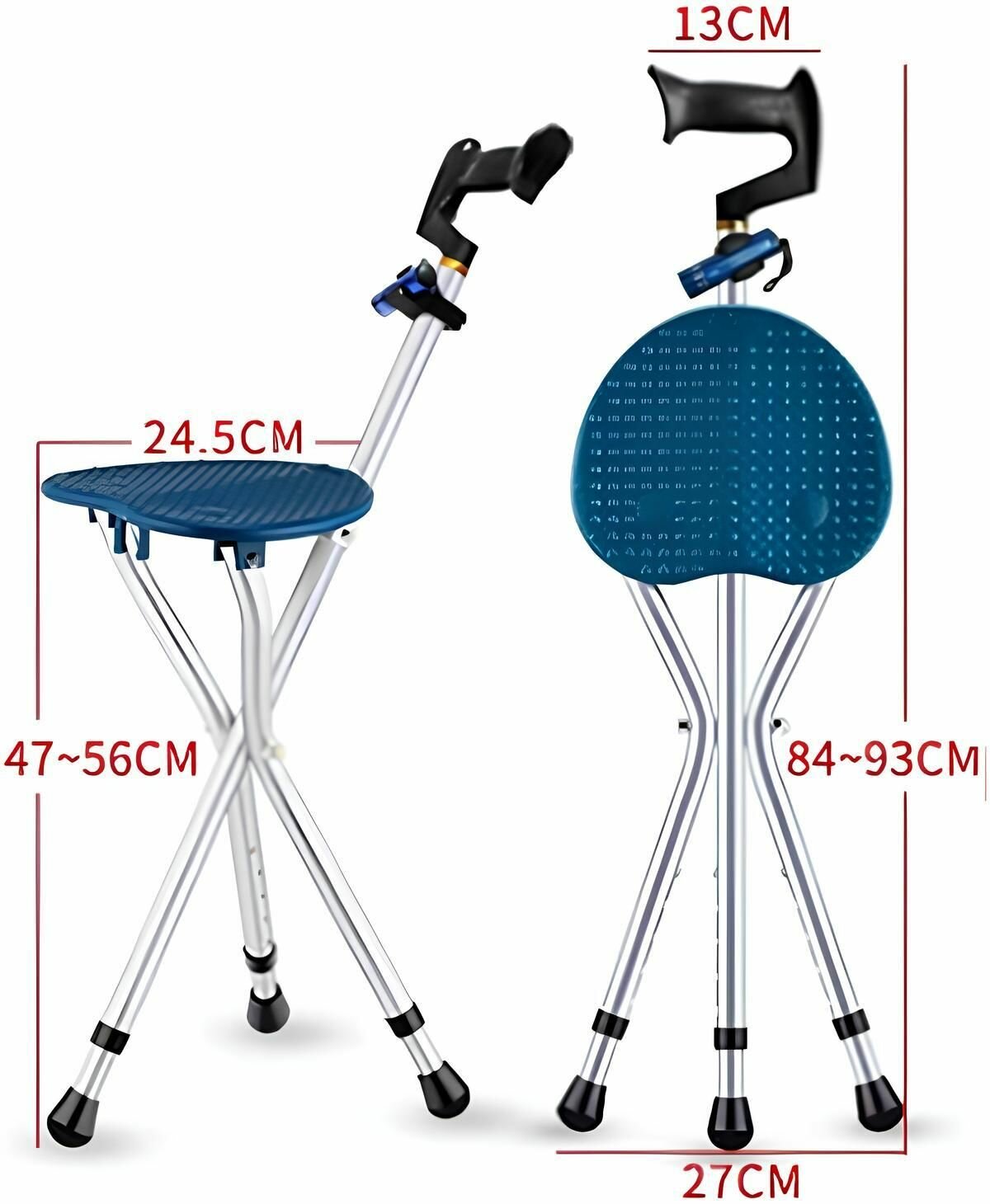 Трость складная с сиденьем 3 в 1 с LED фонарем. Отличная поддержка для пожилых, инвалидов и людей с ограниченными возможностями. Изготовлен из качественного алюминиевого сплава, окислительная обработка поверхности, устойчивость к коррозии и стабильность. Удобная рукоятка, может массировать акупунктурную кость запястья, соответствует эргономичным дизайнам, легко держать. Увеличенное сиденье, подходит для бедер, удобно сидеть. Массажные частицы на табурете, подходят для фитнеса пожилых людей. Складной дизайн, легко хранить и удобно носить с собой, когда вы выходите на улицу. Светодиодный фонарь для освещения ночной дороги, лестницы, крышки люков, препятствия и т. д. Ножки с нескользящими колпачками. Допускается погрешность 1-3 см из-за ручного измерения, спасибо за понимание. В комплекте запасные резиновые ножки-3 шт. и чехол для сиденья.