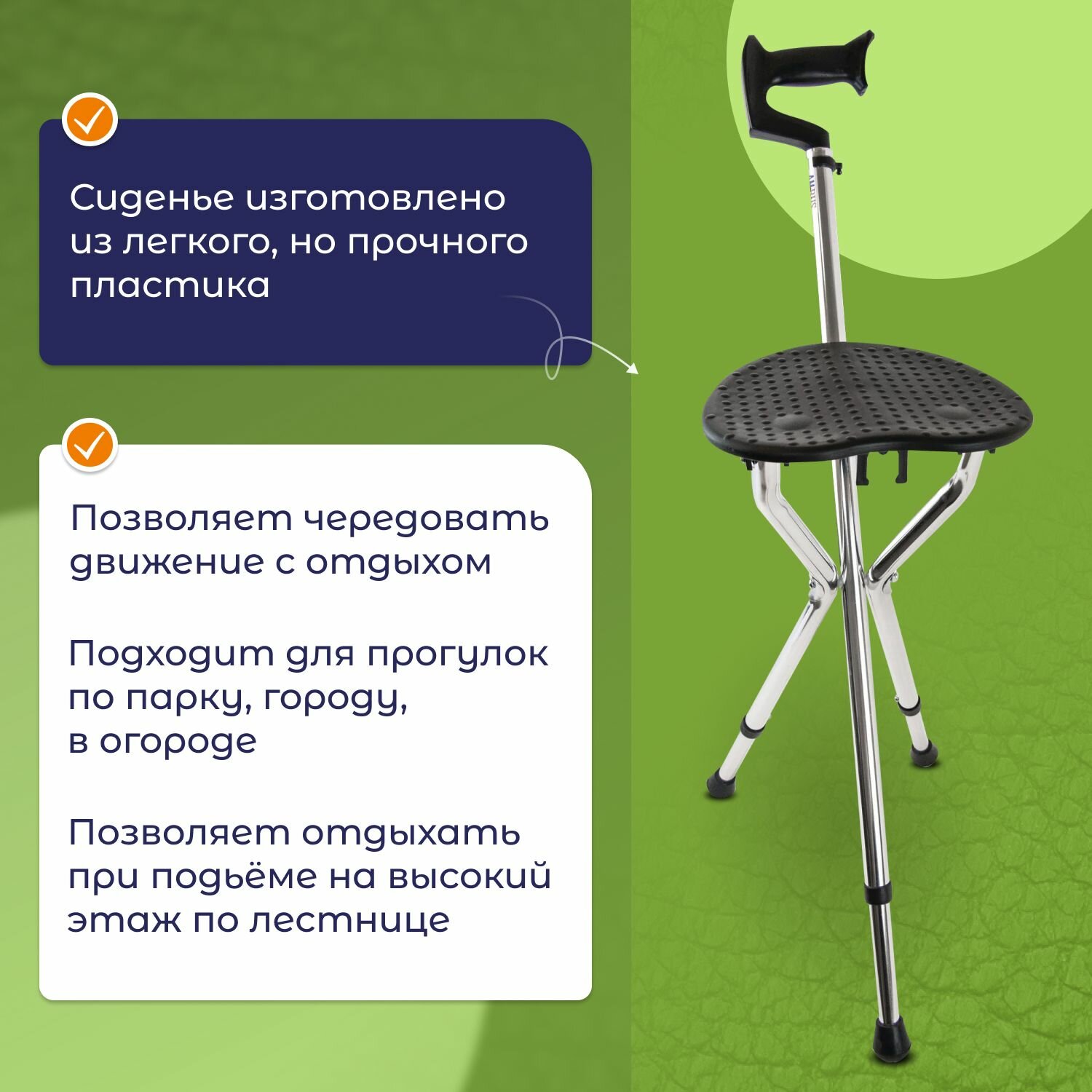 Купить Трость-стул, складная, телескопическая, алюминий, максимальная нагрузка 113кг, высота 93см с доставкой по всей России.