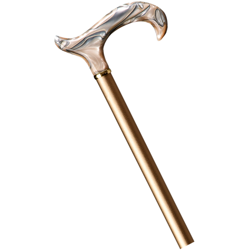 Великолепная трость для ценителей красоты и изящества. Ударопрочный акрил с мраморным рисунком. Рукоять буквально переливается различными перламутровыми цветами и оттенками. Золотистое кольцо органично вписывается между шафтом и рукоятью. Основной цвет трости матовое золото. Присутствует надежный немецкий механизм по регулировке высоты.