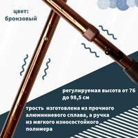- для определения подходящей длинны трости необходимо встать прямо, опустив руки вниз. Перевернуть трость, поставив ее на пол рукояткой вниз, трость должна заканчиваться на уровне запястья