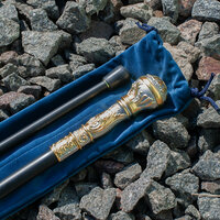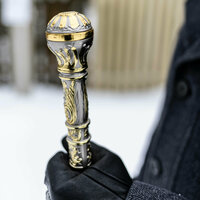 Трость имеет стильный дизайн, сочетающий в себе черный, серебрянный и золотистый цвета.