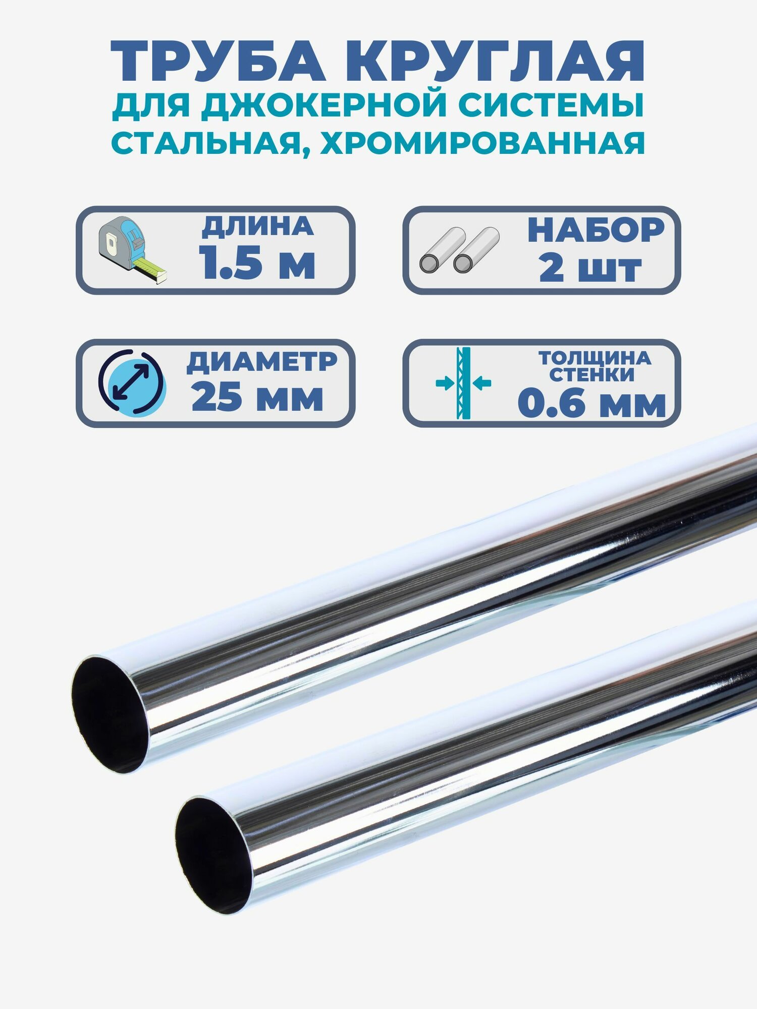 Труба 25×1500 мм толщина 0,6 мм. Набор 2 штуки, из оцинкованной стали с хромированным покрытием. Подходит для использования в джокерных системах, обеспечивая высокую прочность и долговечность.: сравнение цен, характеристики, фото, актуальное наличие и цены.
