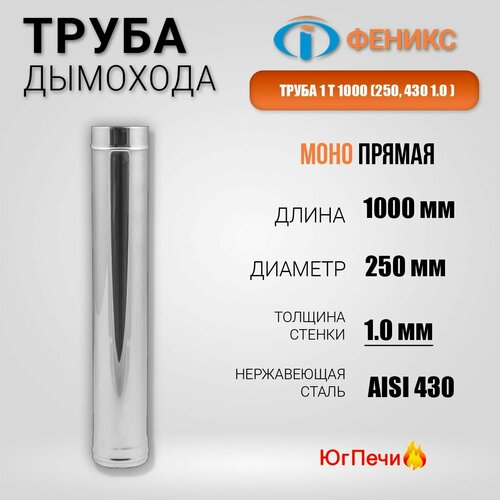Труба для дымохода ФЕНИКС прямая 1Т 1000. Длина 1 м, Диаметр 250 мм, Нержавеющая сталь AISI 430, Толщина стенки 1 мм.: сравнение цен, характеристики, фото, актуальное наличие и цены.