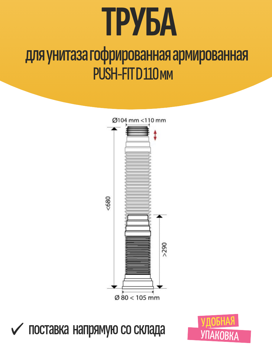 | Дополнительная информация | Труба д/унитаза гофрированная армированная PUSH-FIT D 110 мм |