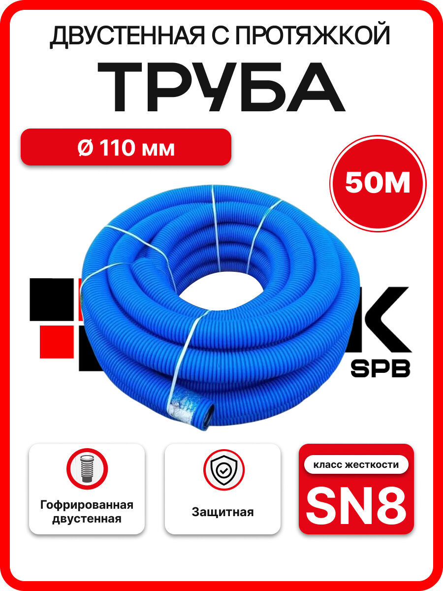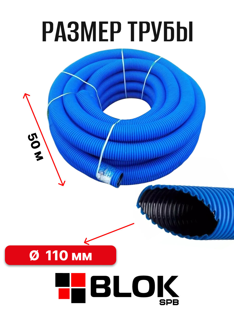 Труба дренажная двустенная 110 мм 50м SN8 синяя ПНД/ПВД с протяжкой бухта - это высококачественный продукт, предназначенный для защиты изолированных проводов и кабелей от механических повреждений и агрессивного воздействия окружающей среды.
