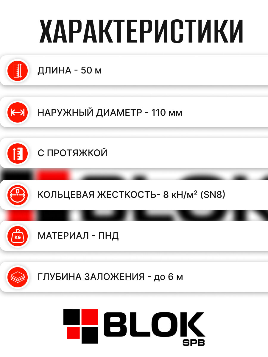 Труба дренажная двустенная 110 мм 50м SN8 синяя ПНД/ПВД с протяжкой бухта может быть использована в электроснабжении, телекоммуникациях, транспортной инфраструктуре, коммунальном хозяйстве и монолитном строительстве.