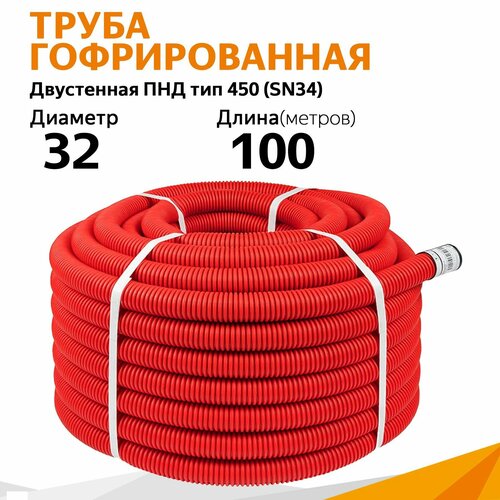 Труба гофрированная двустенная ПНД гибкая тип 450 (SN34) с/з красная д32 мм (100м/уп) Промрукав: сравнение цен, характеристики, фото, актуальное наличие и цены.