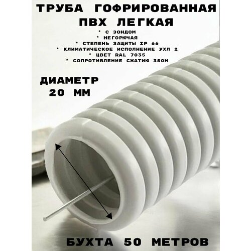 Гофрированная труба из ПВХ подходит для защиты изолированных проводов и кабелей от механических повреждений и агрессивного воздействия окружающей среды. Материал изготовления - ПВХ пластикат (соответствует требованиям пожарной безопасности по ГОСТ, категория горения ПВ-0) препятствует возгоранию изделия. Труба имеет высокую коррозионную и химическую стойкость. Труба является диэлектриком, что гарантирует защиту от поражения электрическим током. Выдерживает статическую нагрузку до 35 кг. Подходит для использования в помещениях или на открытом воздухе, без прямого воздействия солнечных лучей