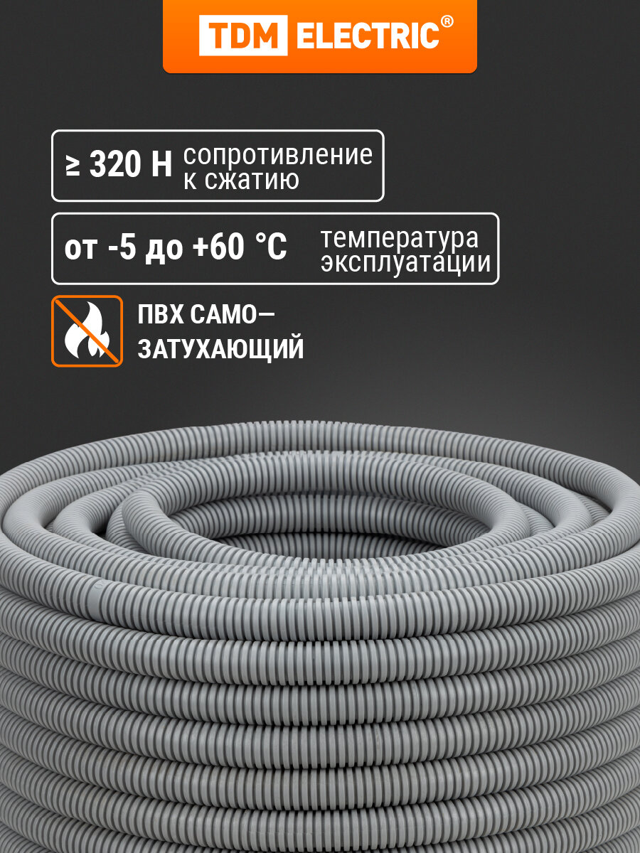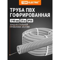 Гофра для кабеля 40мм ПВХ с зондом 25 метров легкая TDM Electric: сравнение цен, характеристики, фото, актуальное наличие и цены.