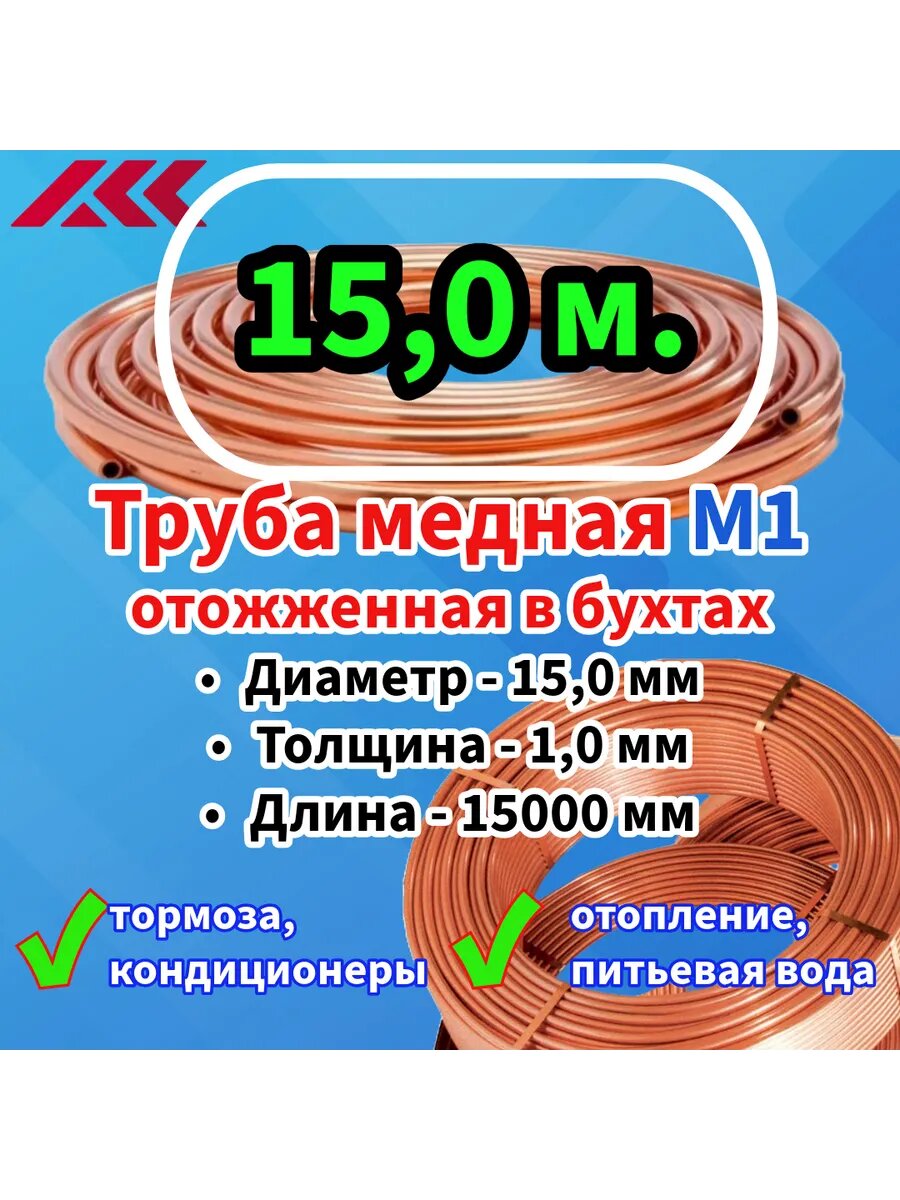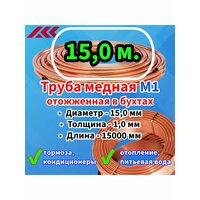Труба медная в бухте, внешний диаметр — 15,0 мм, толщина стенки — 1,0 мм, длина — 15,0 метров, цельная.: сравнение цен, характеристики, фото, актуальное наличие и цены.