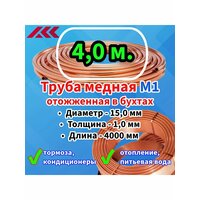 Труба медная в бухте, внешний диаметр — 15,0 мм, толщина стенки — 1,0 мм, длина — 4,0 метра, цельная: сравнение цен, характеристики, фото, актуальное наличие и цены.