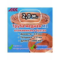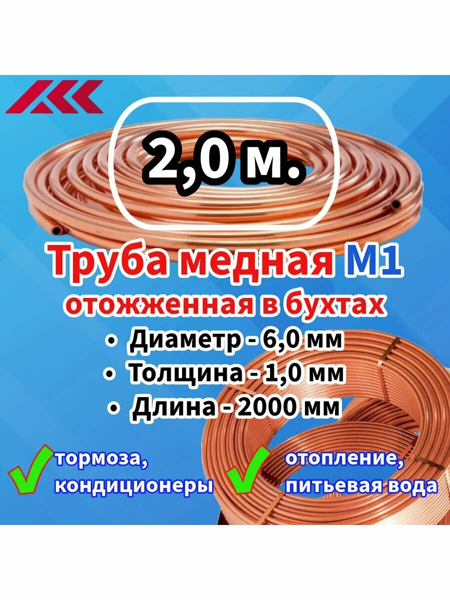 Труба медная в бухте, внешний диаметр — 6,0 мм, толщина стенки — 1,0 мм, длина — 2 метра, цельная.: сравнение цен, характеристики, фото, актуальное наличие и цены.