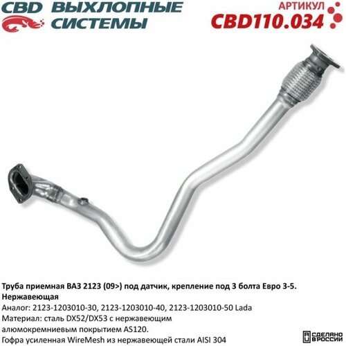 Купить Труба приемная Cbd ВАЗ 2123 (09) под датчик, крепление на 3 болта Евро 3-5, нержавеющая сталь, 110.034 с доставкой по всей России.