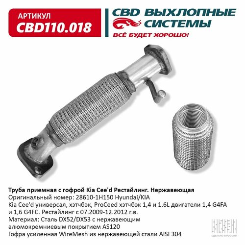 Приемная труба глушителя CEED (2007- 2012) 1.6 G4FC DOHC CBD арт. CBD110.018: сравнение цен, характеристики, фото, актуальное наличие и цены.