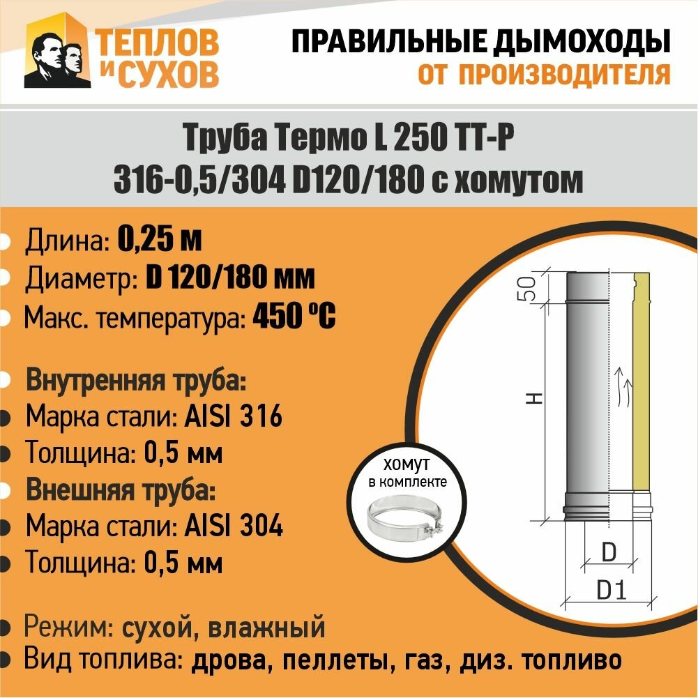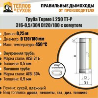 Купить Труба Термо L 250 ТТ-Р 316-0.5/304 D120/180 с хомутом с доставкой по всей России. Труба Термо L 250 ТТ-Р 316-0.5/304 D120/180 с хомутом: сравнение цен, характеристики, фото, актуальное наличие и цены.
