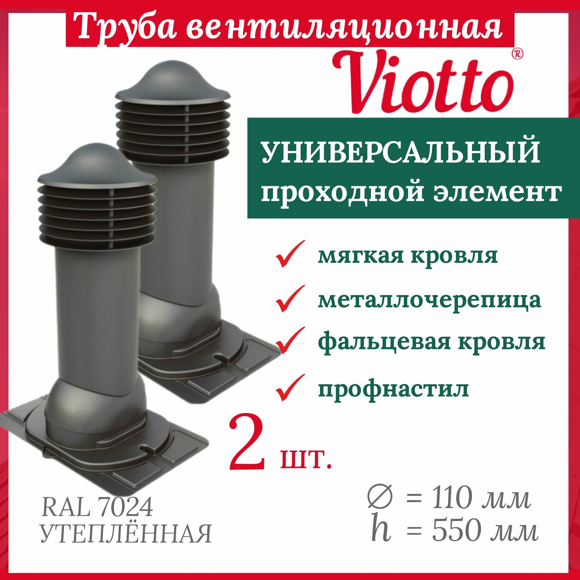 Труба вентиляционная на крышу, Viotto, 110/550 мм, с универсальным проходным элементом, RAL 7024, 2 шт.: сравнение цен, характеристики, фото, актуальное наличие и цены.