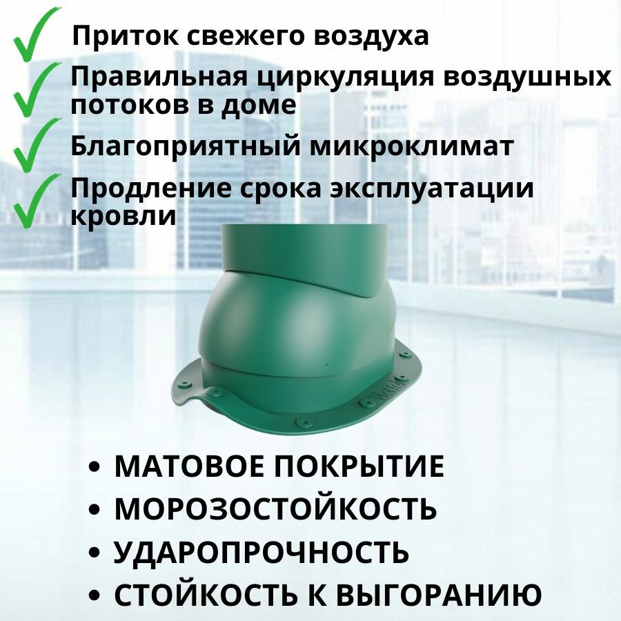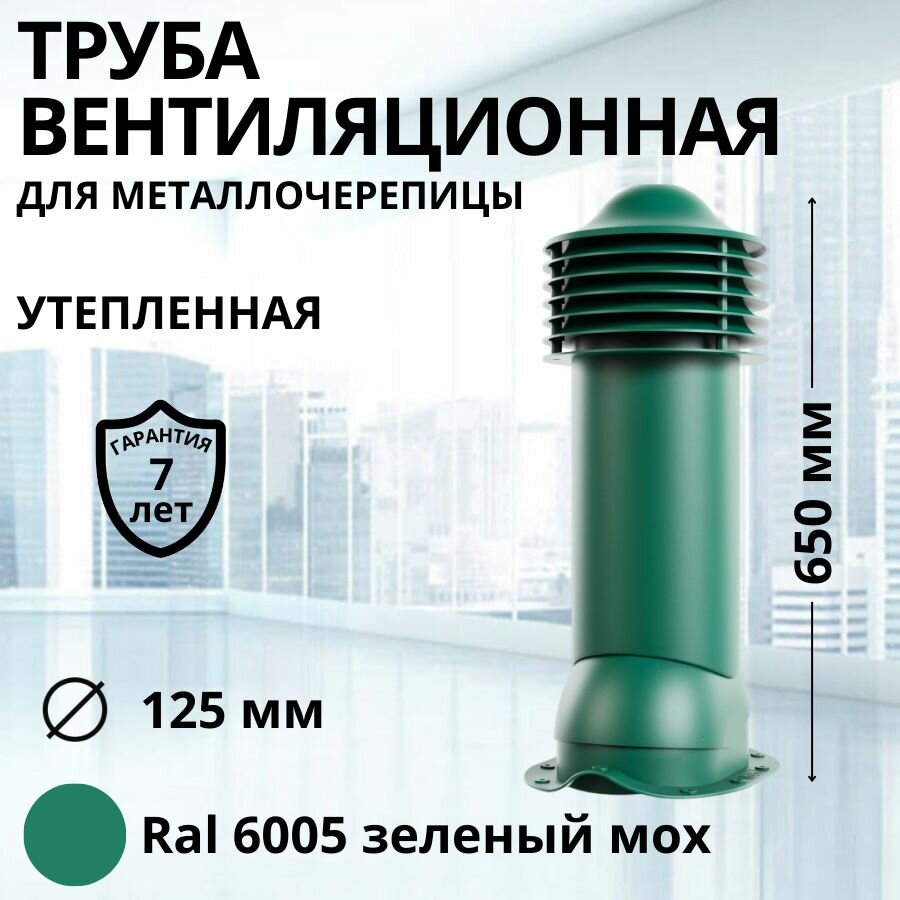 Купить Труба вентиляционная утепленная Viotto d 125 мм для металлочерепицы RAL 6005 зеленый мох с доставкой по всей России. Труба вентиляционная утепленная Viotto d 125 мм для металлочерепицы RAL 6005 зеленый мох: сравнение цен, характеристики, фото, актуальное наличие и цены.