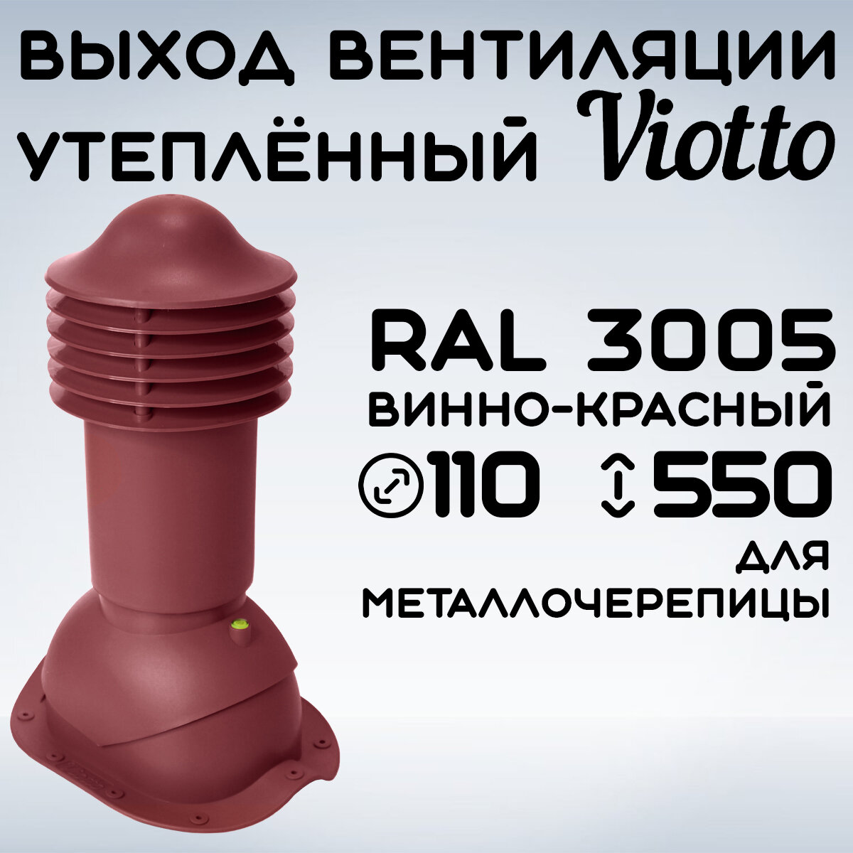 Купить Труба вентиляционная Viotto (110х550 мм) выход вентиляции для крыши из металлочерепицы (классик, монтеррей) (RAL 3005) вишневый с доставкой по всей России.
