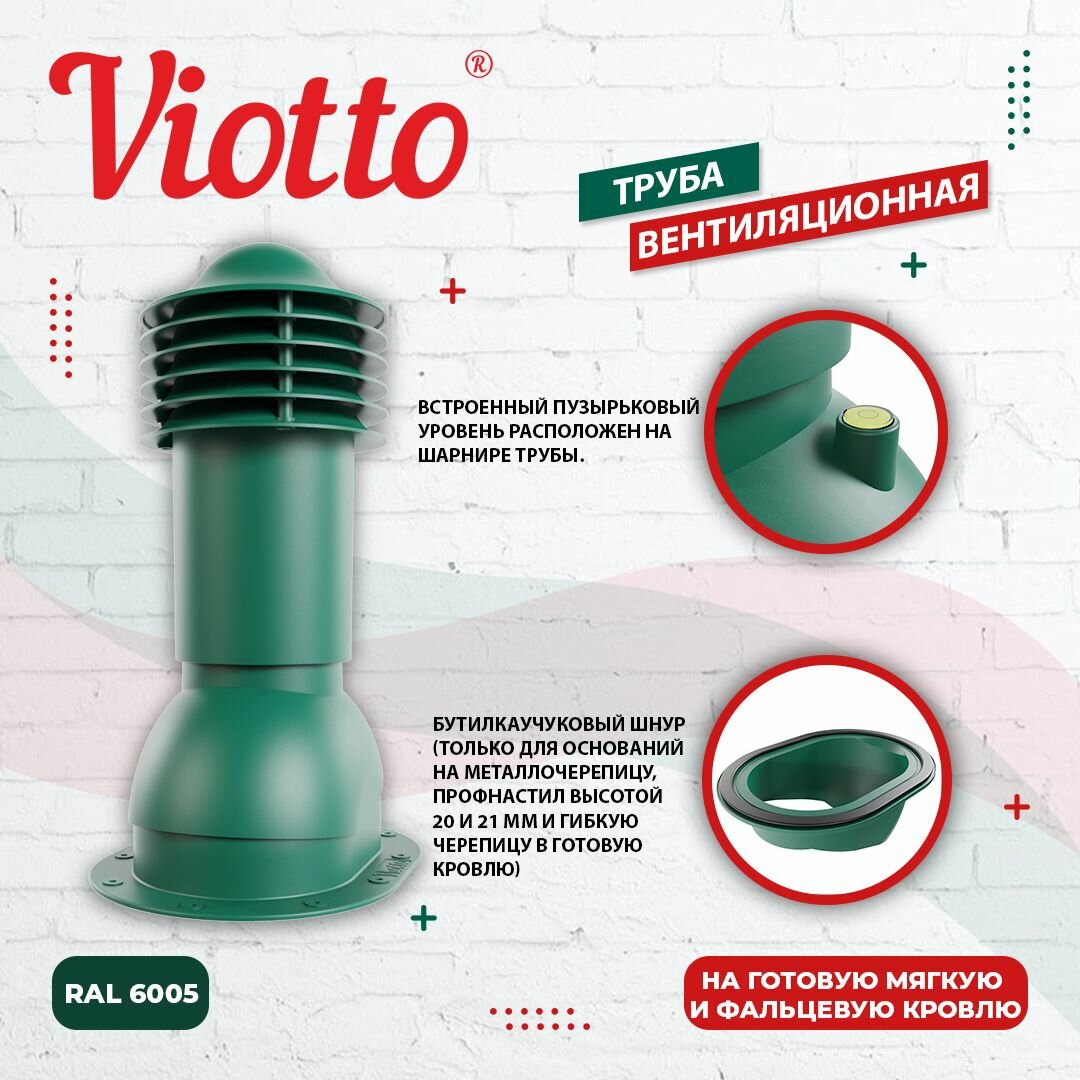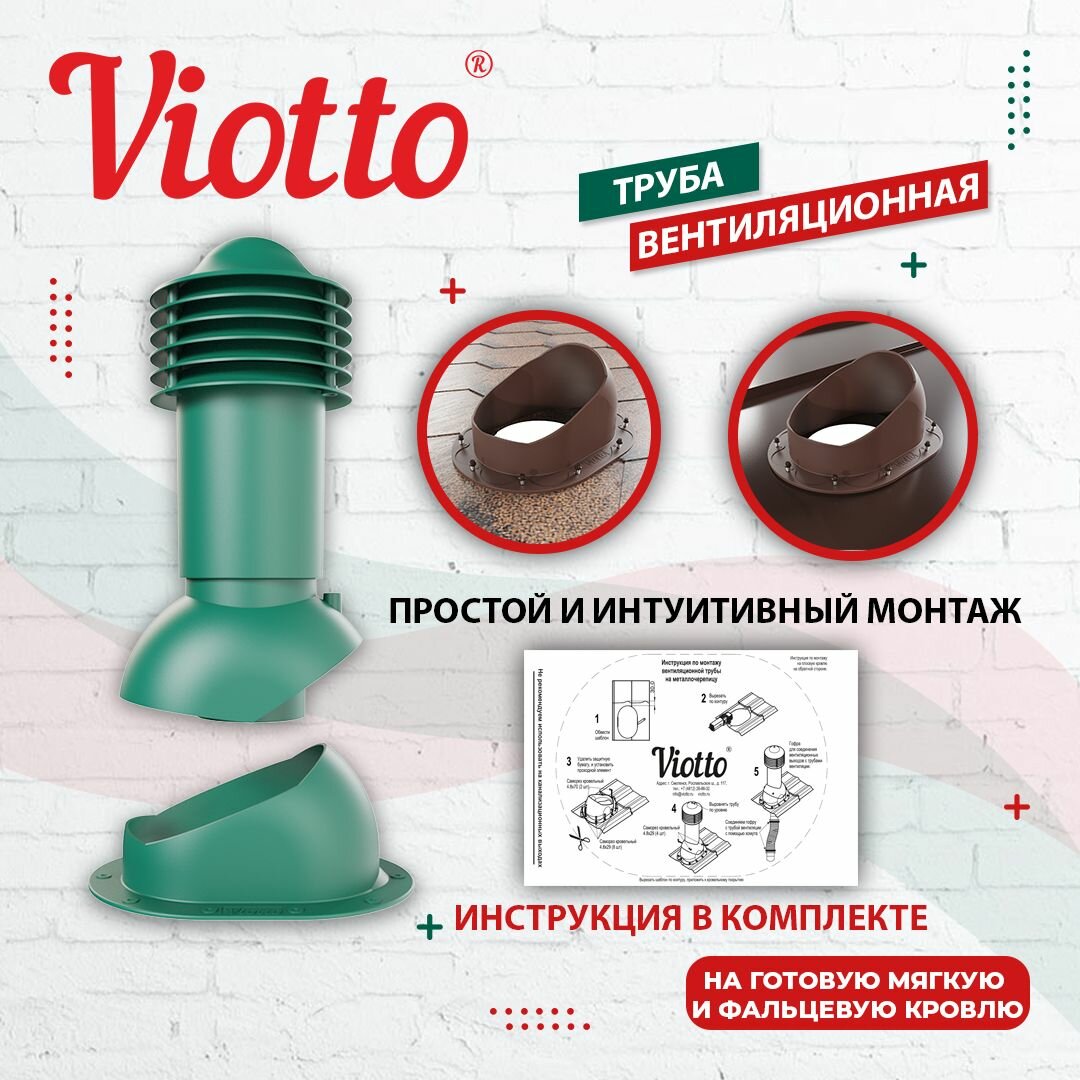 Кровельная вентиляция в частном доме обеспечивает приток свежего воздуха и правильную циркуляцию воздушных потоков, а также создает благоприятный микроклимат, обеспечивая правильный воздухообмен. Viotto – вентиляция для кровли, разработанная специально для Российских условий. Вентиляционные трубы устойчивы к выгоранию, морозостойкие и ударопрочные.