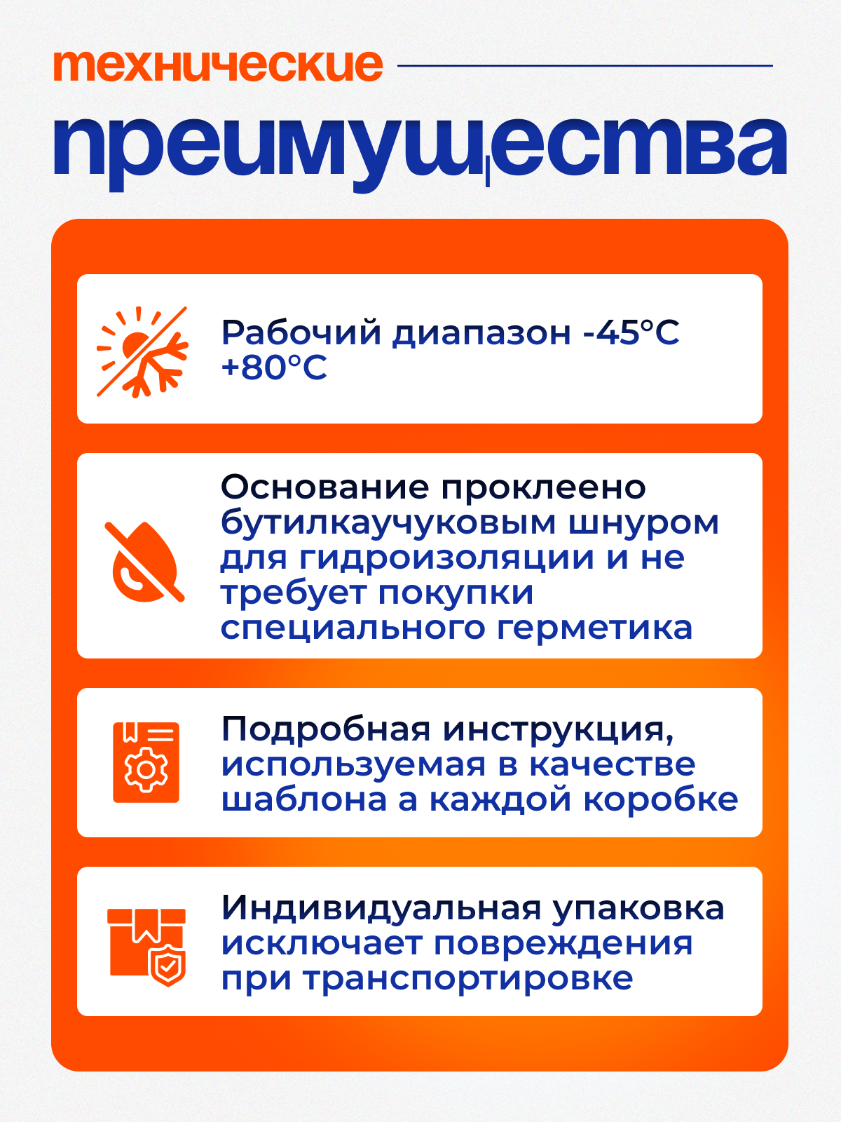 | Подробная комплектация | Основание 1 шт, труба с шарниром, кольцами 1 шт, колпак 1 шт, гофра 1 шт, хомут 2 шт, комплект саморезов 1 уп, лента бутилкаучуковая 1 шт, инструкция-шаблон по монтажу 1 шт |