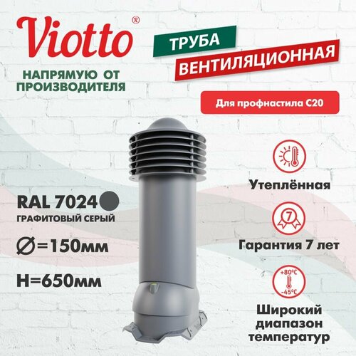 Купить Вентиляционный выход D 125/150 мм, труба вентиляционная для кровли из профнастила С20, утепленный, Viotto, RAL 7024 серый с доставкой по всей России.