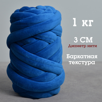 Купить Трубчатая Толстая пряжа Бархат 1 кг для вязания руками. Толщина нити 3 см, оттенок Сапфир с доставкой по всей России.
