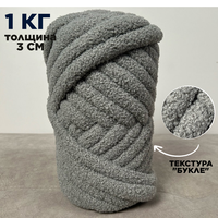 Купить Трубчатая Толстая пряжа Букле 1 кг для вязания руками. Толщина нити 3 см, оттенок асфальт с доставкой по всей России.