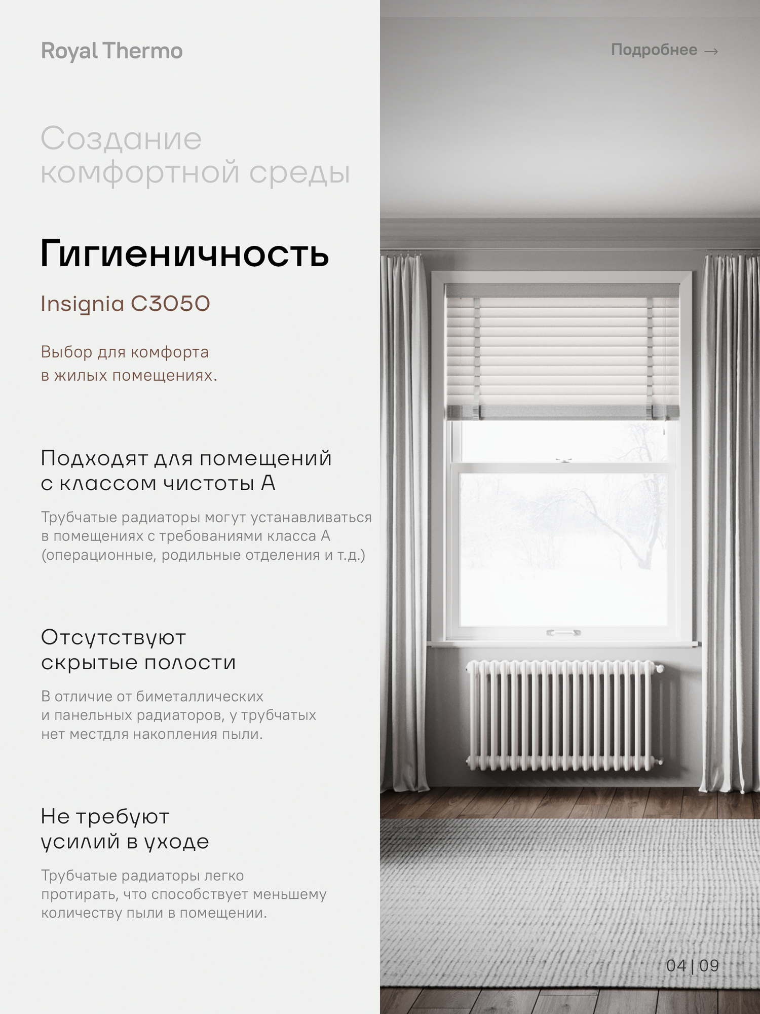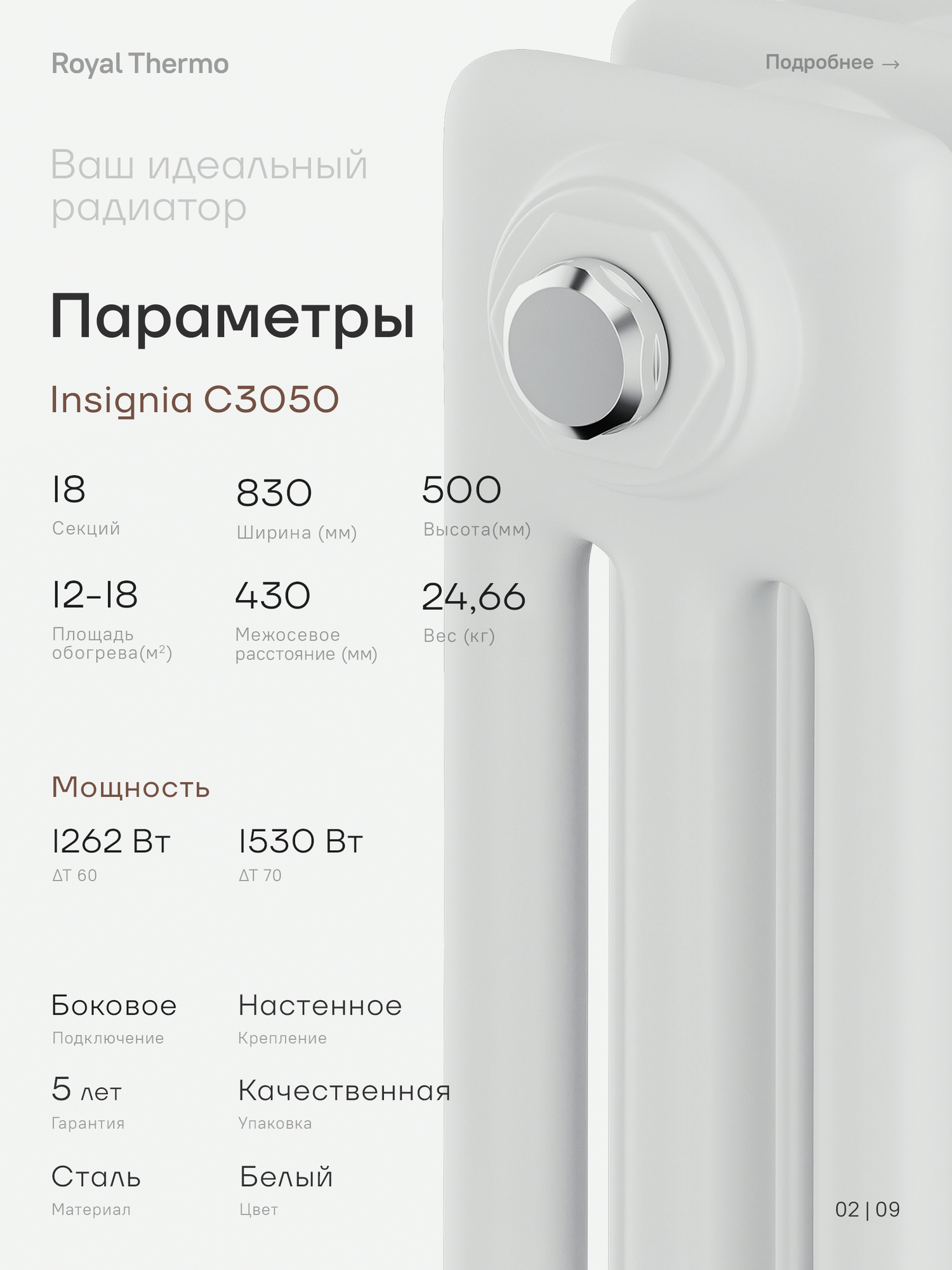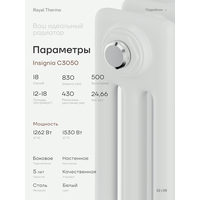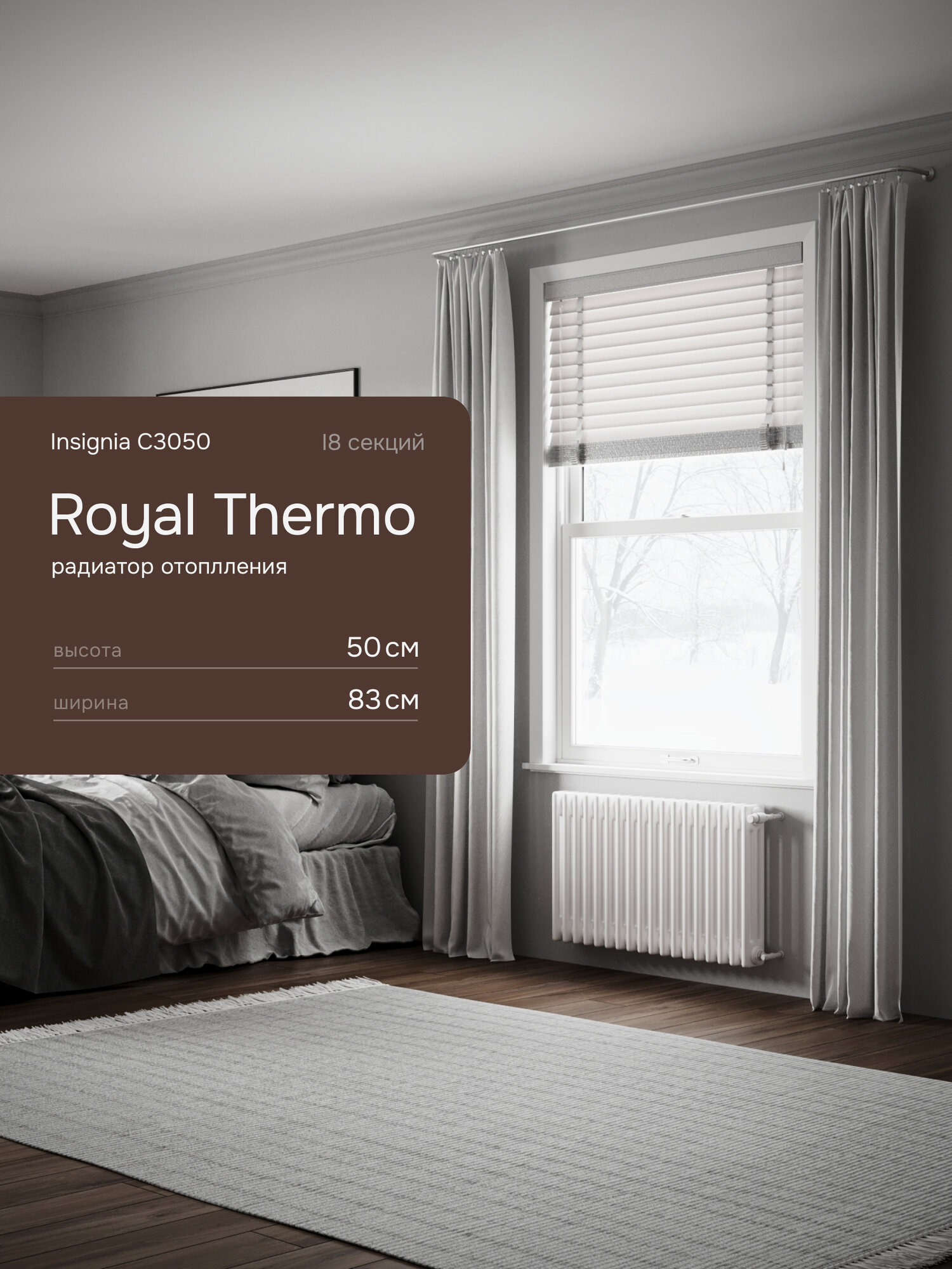 Трубчатый радиатор Royal Thermo Insignia C_3050, 18 секций, белый, боковое подключение 1/2″: сравнение цен, характеристики, фото, актуальное наличие и цены.