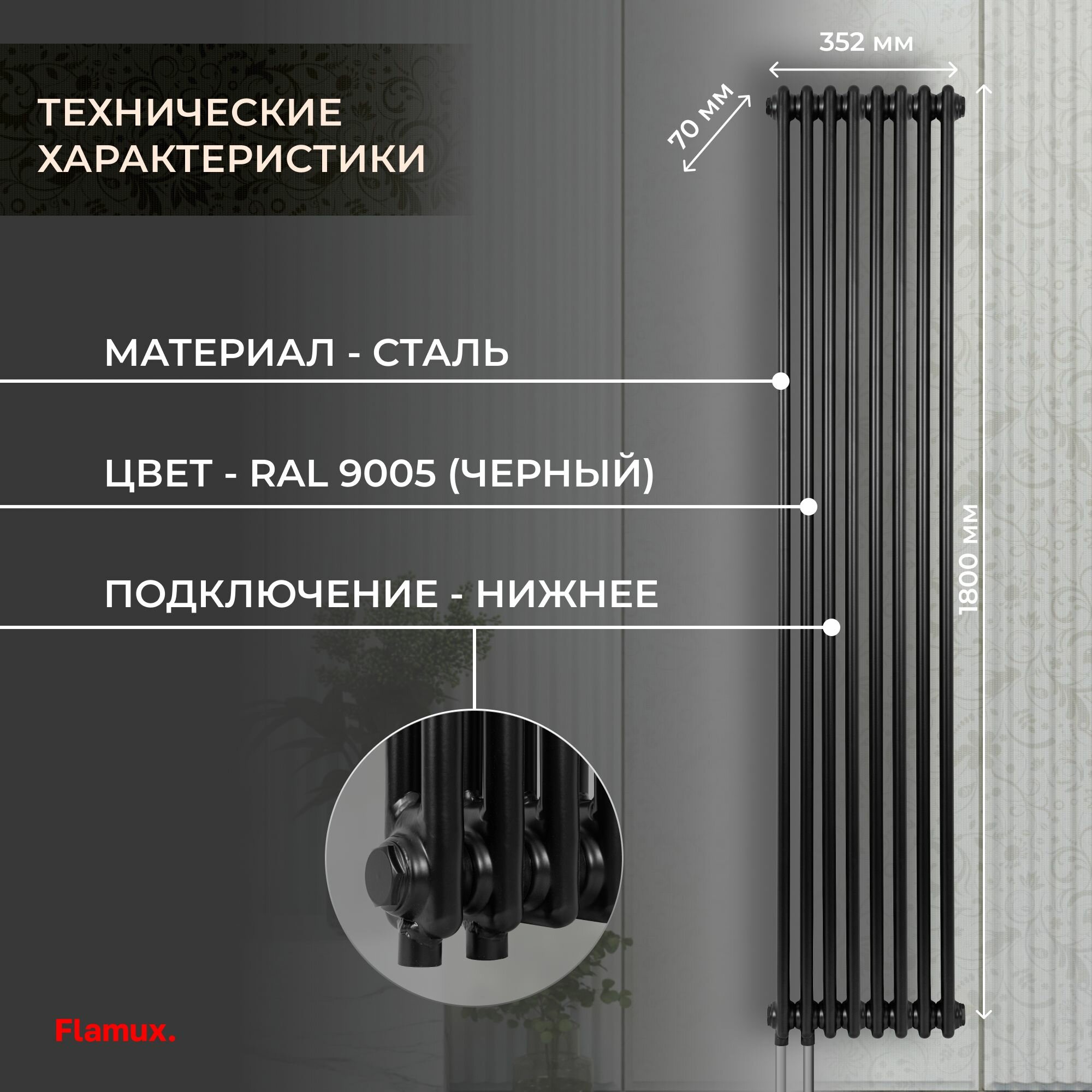 Трубчатый стальной радиатор FLAMUX 2180 ALTUS, Высота 1800мм, 8 секций, RAL 9005. Универсальное подключение: Нижнее. Стальная батарея FLAMUX. Вертикальный радиатор для обогрева помещения.: сравнение цен, характеристики, фото, актуальное наличие и цены.