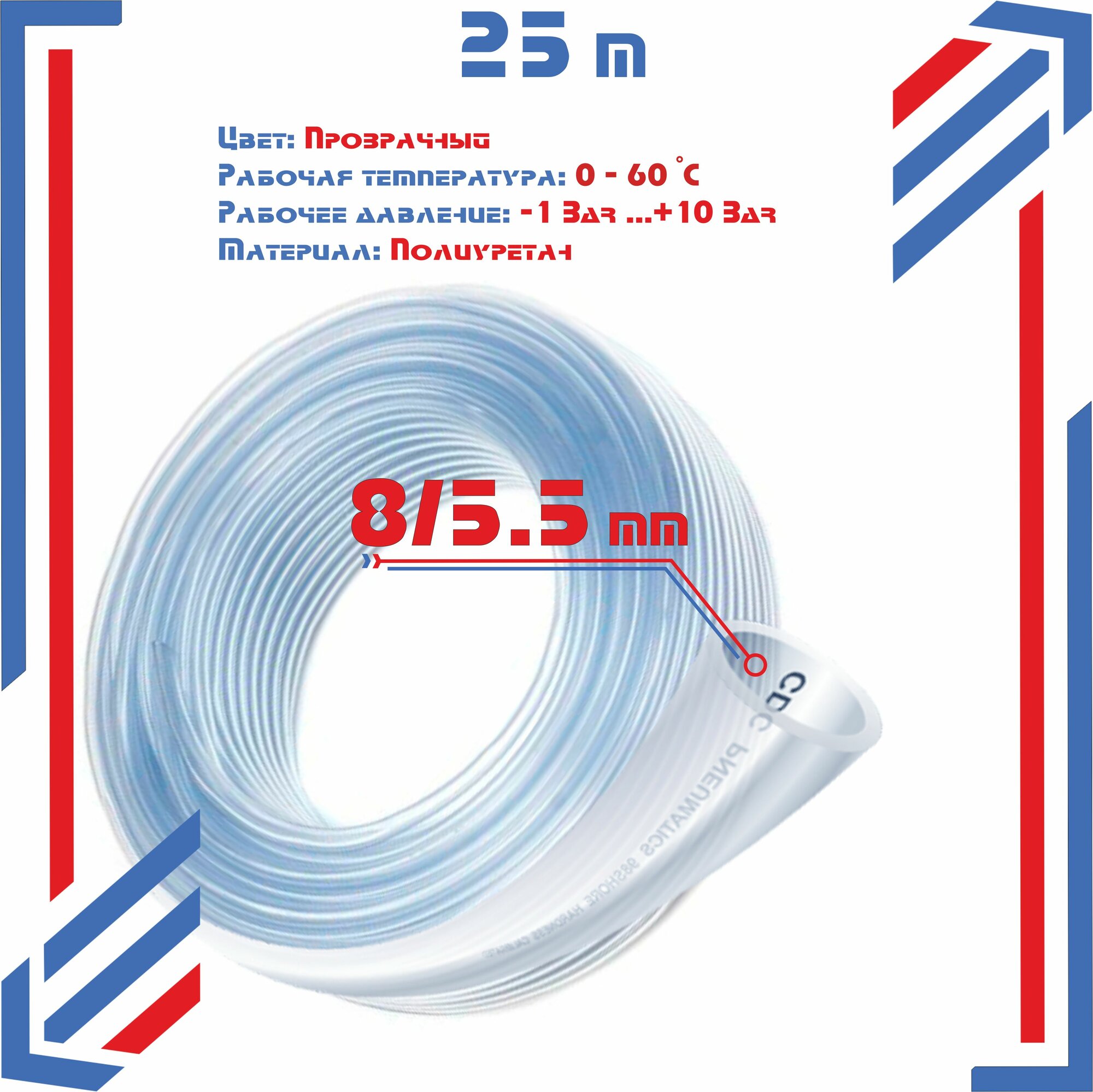 Трубка 8х5,5; 25 метров; пневматическая полиуретановая, прозрачная (Ю. Корея): сравнение цен, характеристики, фото, актуальное наличие и цены.