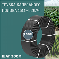 Трубка для капельного полива 16 мм (шаг 30 см) 1 мм/2,0 л/ч черная (200 м) бухта представляет собой высококачественный продукт, предназначенный для организации эффективного капельного полива.