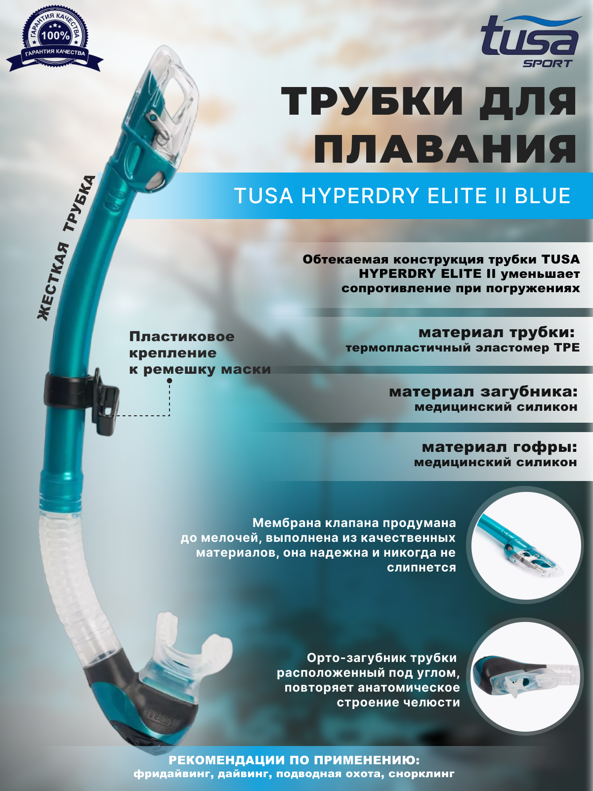 Трубка для плавания TUSA HYPERDRY ELITE II, бирюзовый: сравнение цен, характеристики, фото, актуальное наличие и цены.