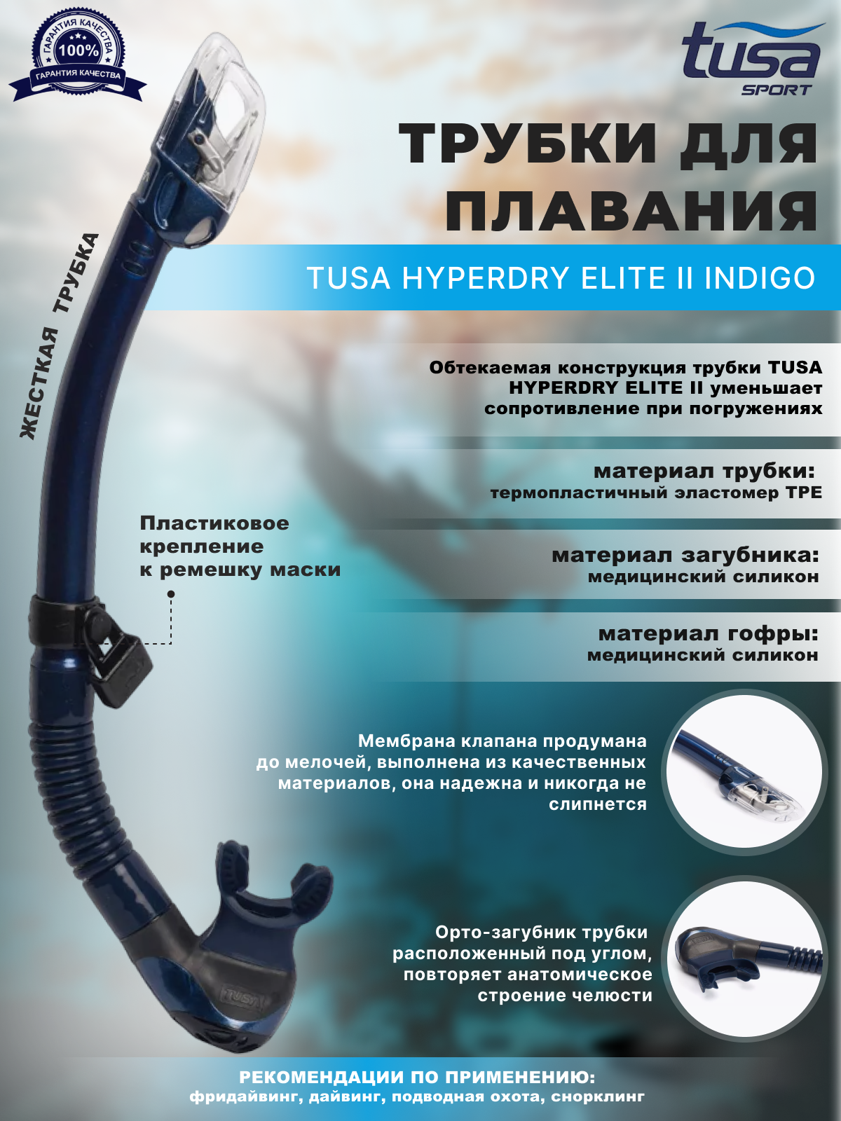 Купить Трубка для плавания TUSA HYPERDRY ELITE II, синий индиго с доставкой по всей России.