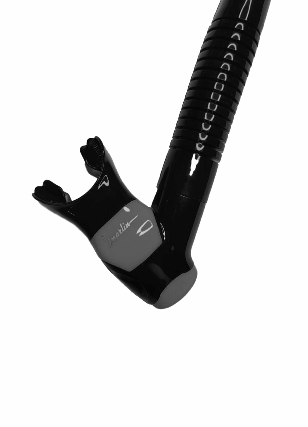 Купить Трубка двухклапанная Marlin DRY LUX, прямая гофра, анатомический загубник, черная с доставкой по всей России.