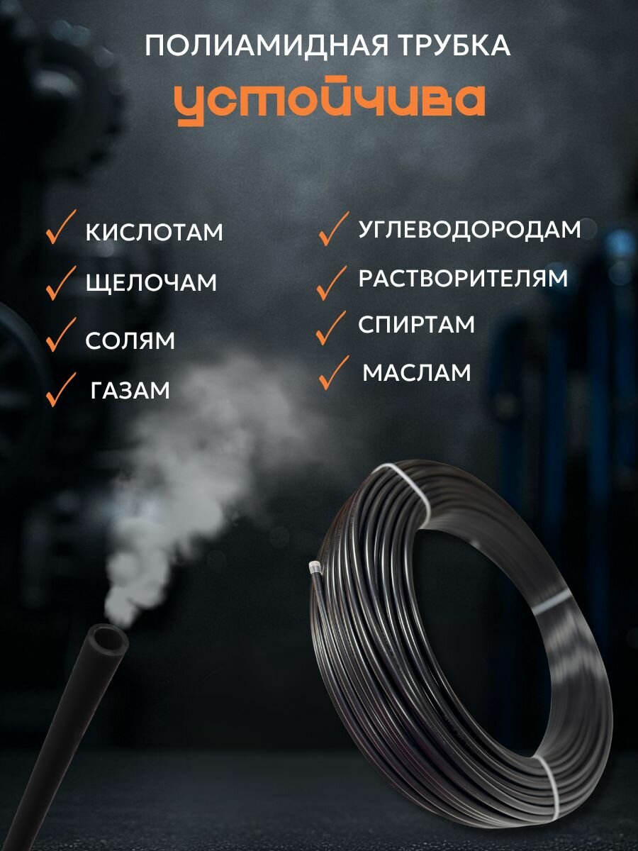 (PA) 10х7мм трубка пневматическая полиамидная черная