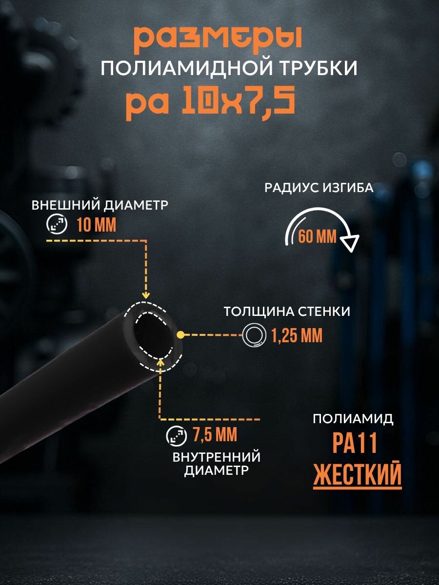 Полиамидная трубка PA 10x7 – это прочное и надёжное решение для множества промышленных и автомобильных систем. Изготовленная из полиамида 11 (PA11), эта трубка обладает высокой устойчивостью к температурным перепадам, давлению и воздействию агрессивных сред, таких как масла, топливо, вода и сжатый воздух. Она идеально подходит для использования в различных системах, от топливных магистралей до пневматических и гидравлических контуров.