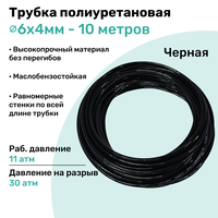 Купить Трубка пневматическая полиуретановая 98A 6х4мм — 10м, маслобензостойкая, воздушная, Пневмошланг NBPT, Черная с доставкой по всей России.