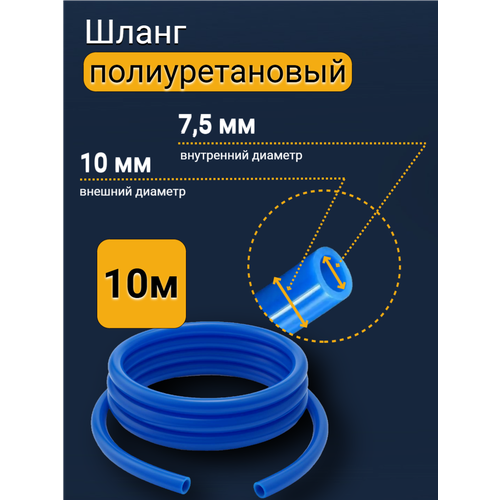 Полиуретановый шланг 10 мм / 7,5 мм, 10 м — для компрессора, пневмоинструмента и транспортировки жидкостей. Полиуретановый шланг — это высококачественное решение для использования в самых разных сферах, от бытового применения до профессиональных пневматических систем. Он отличается гибкостью, износостойкостью и долговечностью, что делает его идеальным выбором для работы с компрессорами, пневмоинструментами и системами подачи жидкостей. Основные характеристики: ✔ Диаметр: внешний – 10 мм, внутренний – 7,5 мм ✔ Длина: 10 м ✔ Материал: полиуретан (PU) — устойчив к повреждениям и перегибам ✔ Рабочее давление: до 8 атм ✔ Температурный режим: от -30°C до +60°C ✔ Совместимость: подходит для всех быстросъёмных соединений 10 мм ✔ Безопасность: не содержит ртути и свинца Применение: ✅ Шланг для компрессора: подходит для работы с воздушными компрессорами и пневматическими инструментами ✅ Шланг для транспортировки жидкостей: используется для подачи воды, топлива, масел и других жидкостей ✅ Шланг для пневмоинструментов: идеален для подключения краскопультов, гайковертов и других устройств ✅ Пищевая промышленность: безопасен для работы в контакте с пищевыми продуктами ✅ Самогоноварение: устойчив к воздействию спиртов и высоких температур ✅ Шланг для топлива: подходит для использования в топливных системах. Полиуретановый шланг обеспечит долговечность и надежность при эксплуатации в различных условиях. Он способен выдерживать повышенное давление и не теряет гибкости при низких температурах, что делает его отличным выбором для любых задач, требующих прочности и надежности. Идеален как для профессионалов, так и для домашних мастеров!