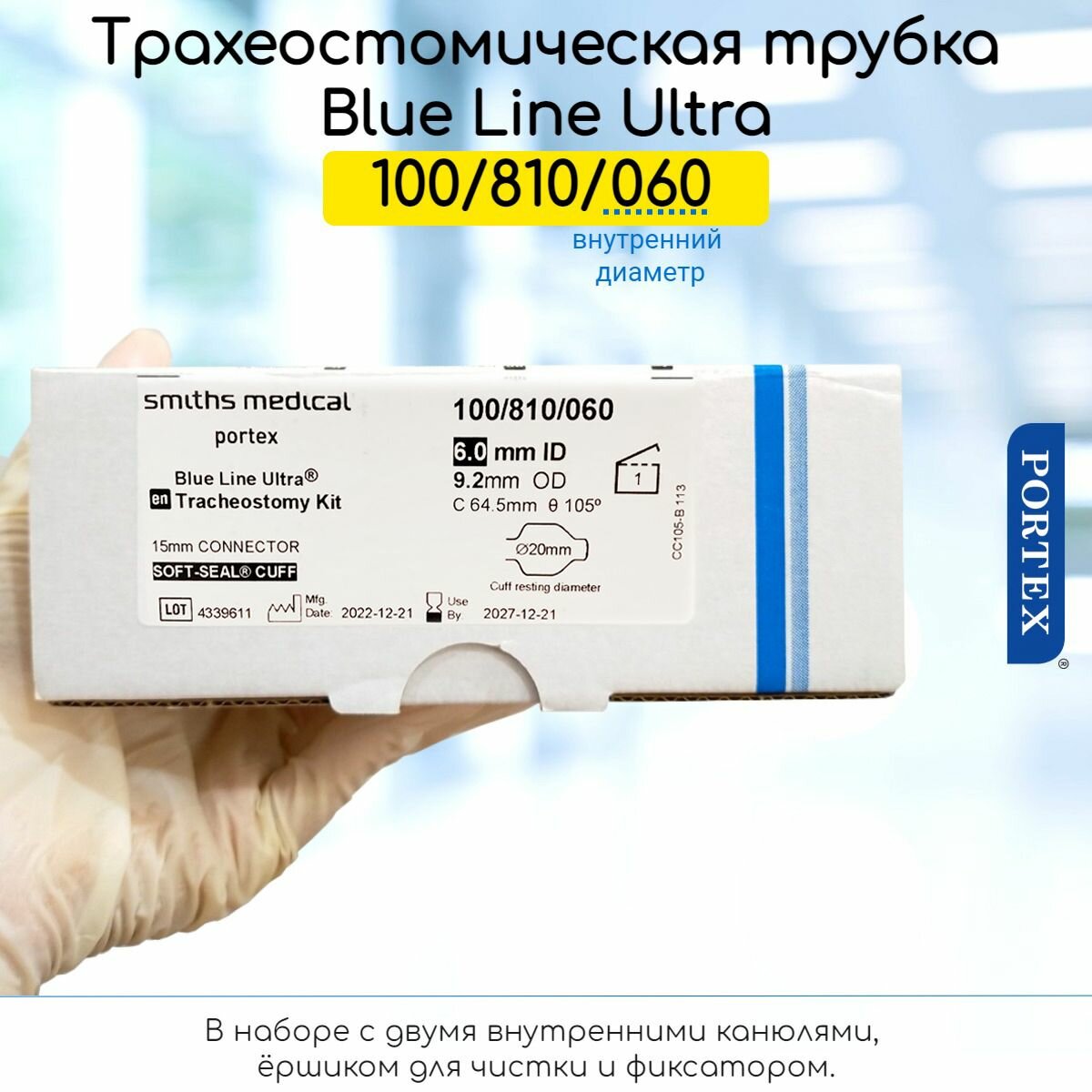 Трубка трахеостомическая Portex Blue Line Ultra 6мм, (100/810/060) с манжетой и 2-я канюлями, нефенестрированная: сравнение цен, характеристики, фото, актуальное наличие и цены.