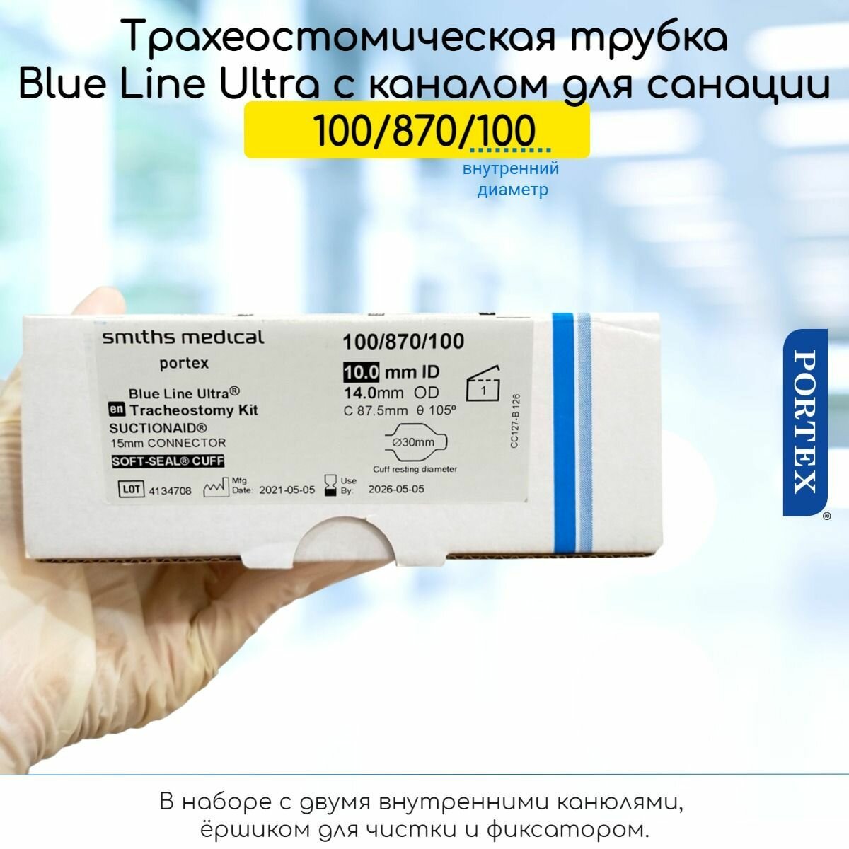 Трубка трахеостомическая Portex Blue Line Ultra Suctionaid 10мм с манжетой и каналом для санации, в наборе: сравнение цен, характеристики, фото, актуальное наличие и цены.