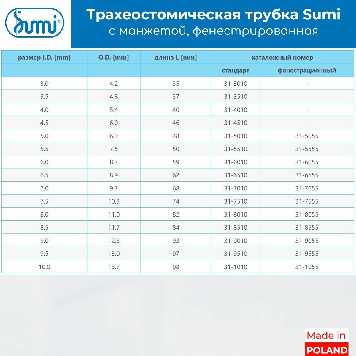 Трубка трахеостомическая Sumi 10,0 мм (31-1055) с манжетой низкого давления, фенестрированная: сравнение цен, характеристики, фото, актуальное наличие и цены.
