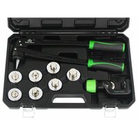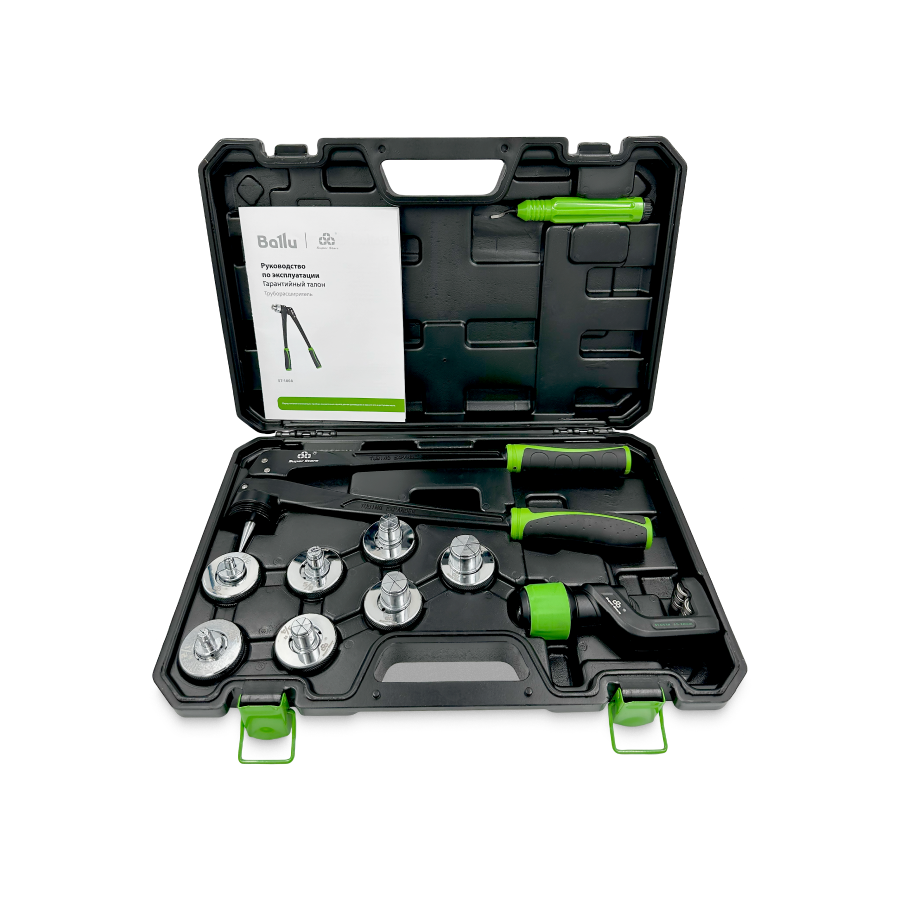 Труборасширитель рычажный Ballu Super Stars ST-100A является специализированным инструментом, предназначенным для расширения медных, алюминиевых и латунных труб. В комплекте насадки для расширения труб диаметром: 3/8", 1/2", 5/8", 3/4", 7/8", 1", 1 1/8". Главная задача этого инструмента — создать необходимую глубину раструба и зазора между трубами, что обеспечивает надежное и качественное соединение. Обеспечивает качественный монтаж трубок без использования фитингов в установках кондиционирования воздуха и холодильных системах, подготавливая трубы к пайке. При выборе труборасширителя важно учитывать диаметр трубы, для которой он будет использоваться. Комплектация: Труборасширитель ST-100A; Сменные головки; Труборез ST-G532; Риммер CT-207; Кейс. Особенности труборасширителя: расширитель экономичен и не нуждается в источнике питания для выполнения работ; нескользящие ручки-держатели для удобной работы; быстрое расширение трубок; компоненты термически обработаны для долгого срока эксплуатации; позволяет сэкономить до 50% средств при пайке за счёт отсутствия нужды в фитингах. Труборез приспособление для работы с металлическими трубами. Применяется для резки тонкостенных стальных труб. Оснащен специальным механизмом с регулируемым диапазоном обрезки, что позволяет работать с трубами разных диаметров. Риммер служит для снятия фаски (заусенцев) внутри и снаружи медных и алюминиевых труб.
