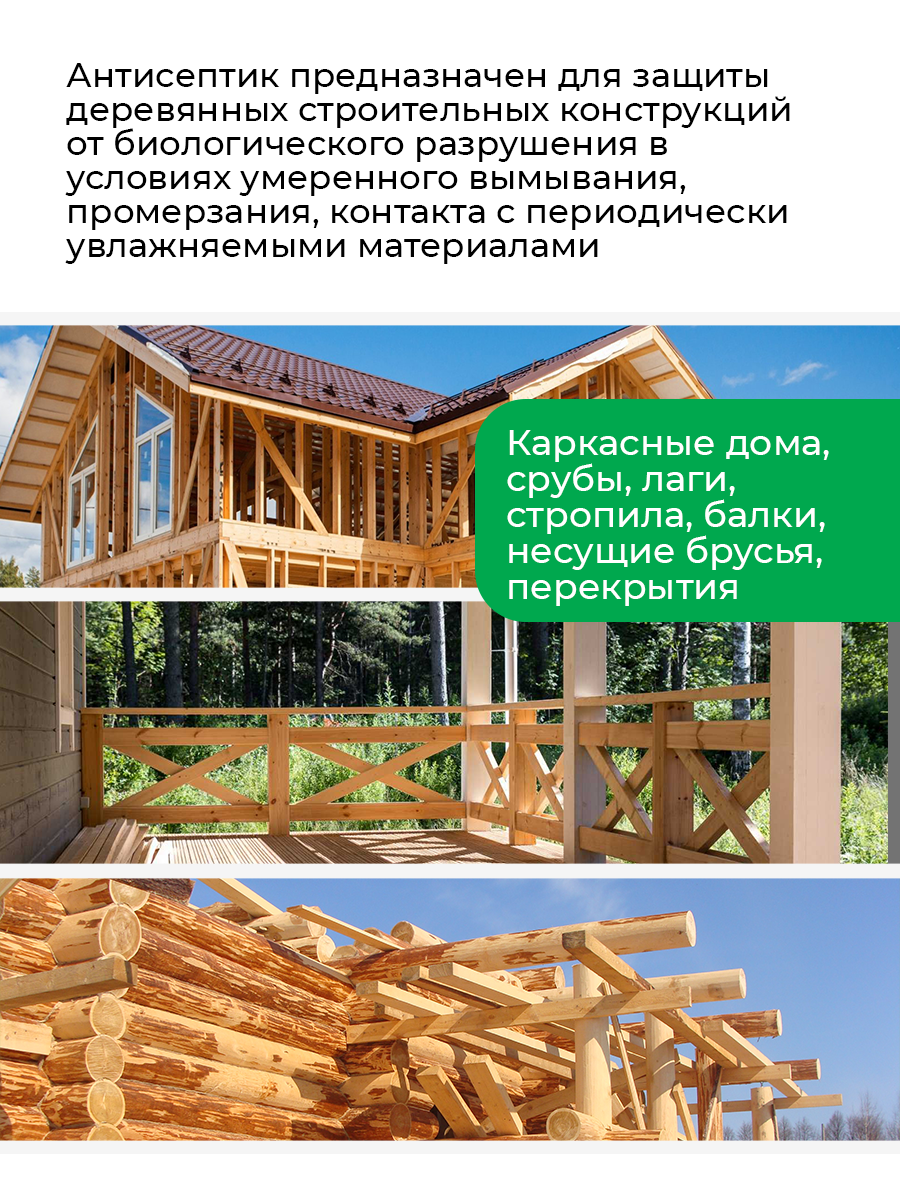 Обеспечивает защиту деревянных конструкций от 20 до 50 лет ГОСТ 20022.0-2016.