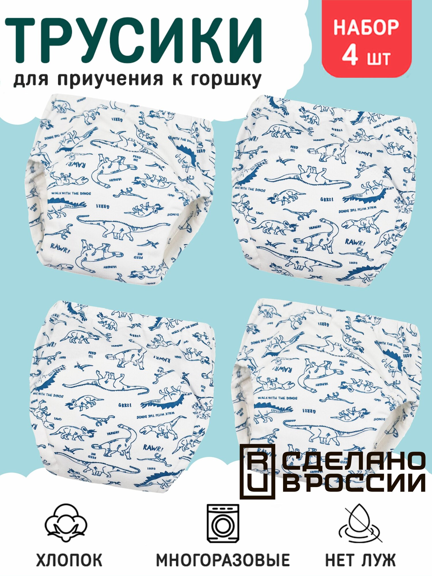 Трусики для приучения к горшку Динозавры синие 4 шт. р.80 (10-12 кг.): сравнение цен, характеристики, фото, актуальное наличие и цены.